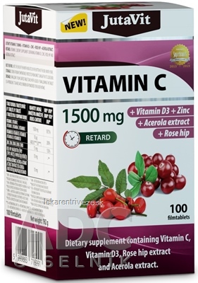 JutaVit Vitamín C 1500 mg tbl s postupným uvoľňovaním, s vitamínom D3, zinkom, šípkami a extraktom z aceroly 1×100 ks