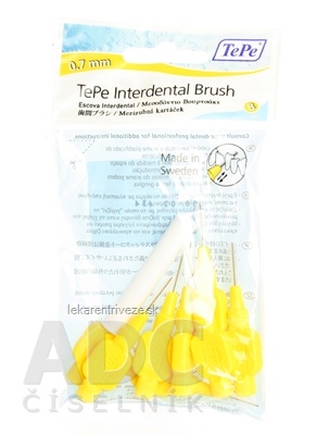 Medzizubné kefky TePe Original na dentálnu starostlivosť, veľkosť 0,7 mm (žltá rukoväť).
